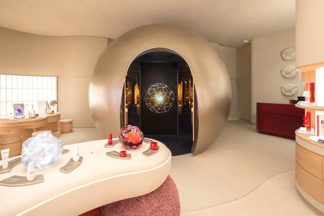 The Skin Counselling Area is elevated to a ceremonial level using washi paper and Hinoki wood. The Gifting Wall takes its sake barrel-inspired design from SK-II’s heritage.